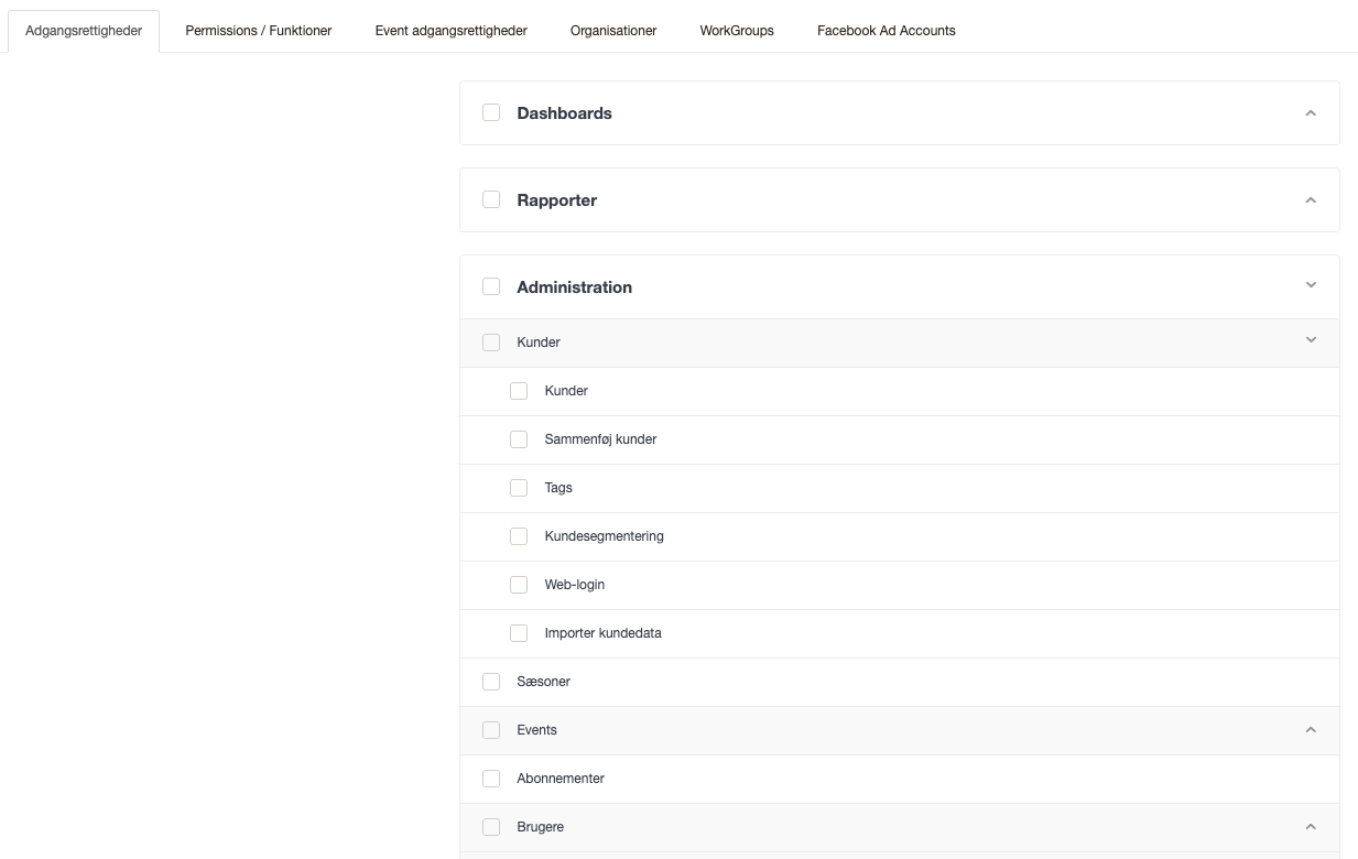- Arrangøradgang uden salgsadgang