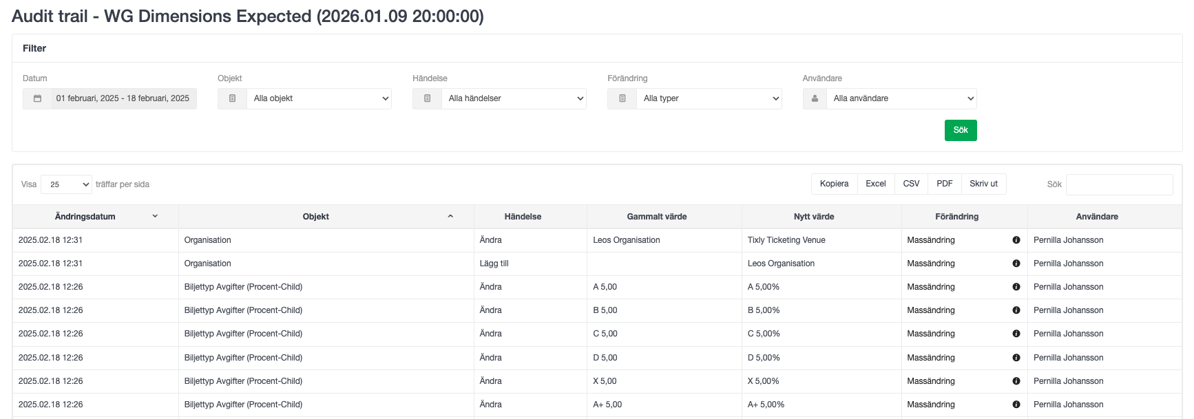 - Visar vilken användare som gjorde ändringen.